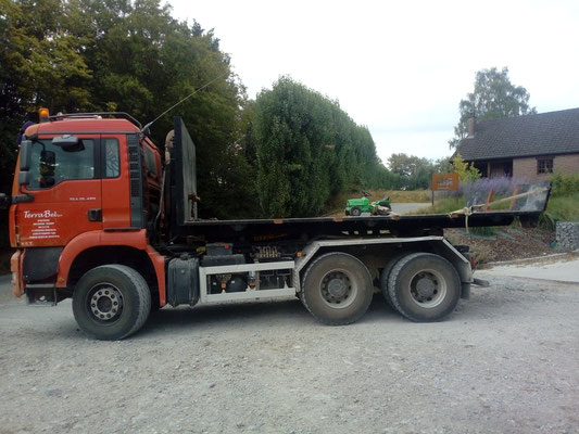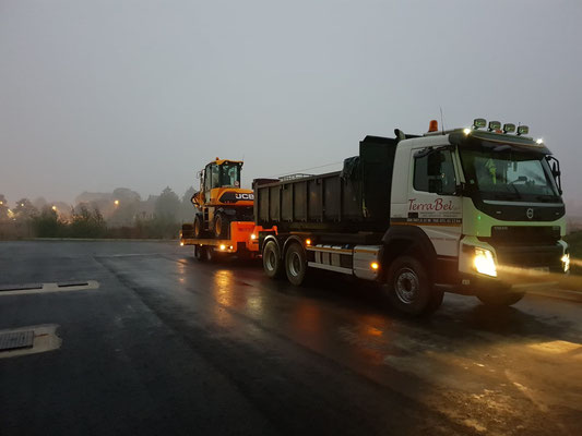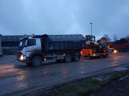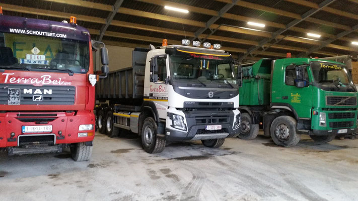 La flotte de TerraBel est composée de camions (plateau et bennes), de grues et engins de chantier, de tracteurs.